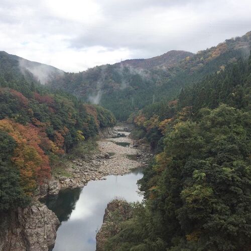 昨年(2017年)に、吉野橋から眺めた片路峡の紅葉が素晴らしかったので、今年もぜひ見たい…と思い立って出発。 ↓昨年にドライブに行ったときの日記はこちら www.toyamaodekake68.com 昨年に一度行ってるので、今回は道を調べることなくすんなりと到着。 吉野橋…