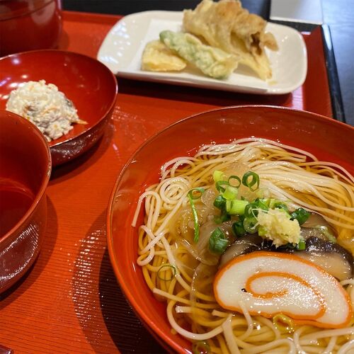 以前から気になってた、砺波市にあるレストランで昼食です。 前回行こうとした時は臨時休業中で振られてしまったので、今回は予約してのリベンジ来店に。 大門素麺には玉ねぎと椎茸、富山ではお馴染み「の」の字の模様の赤巻きかまぼこ。 そういえば幼い頃に…